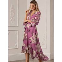 Featuring kimono sleeves, a flattering waist tie belt and a super cute dipped hem, this Yumi light blue floral print dress will inject a little pzaz into your closet. Wear for special occasions - just pair with strappy heels. - Manufacturers part number: Yumi_5056562218624