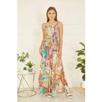 A truly show stopping all over print designed in house for Yumi, inspired by Indian fabrics, with a patchwork feel, This maxi dress will look right at home in the sunshine, with tie straps and a ruched bodice adding a comfortable feel. The maxi length had a flirty side split in the hemline, style with simple sandals and a beach bag. | Yumi Women's Multicolour Patchwork Split Hem Maxi Dress With Tie Straps | Size: 10 - Manufacturers part number: Yumi_5056562291078