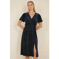 Sparkle like the night sky in this luxurious velvet wrap dress from Yumi, The all over shimmer looks incredible on the super flattering shape. With a midi length hem, tie belt at the waist and soft fluttery angel sleeves. We are obsessed with this for winter weddings, or Christmas parties. | Yumi Women's Navy Velvet Sparkle Wrap Midi Dress | Size: 24 - Manufacturers part number: Yumi_5056562304020