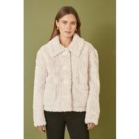 Get ready for the cold weather and to be super cosy with bang on trend faux fur. This jacket is perfect for layering over any casual fit, with an oversize collar and buttons. The pockets add a practical detail, and the textured fabric gives a luxe edge. - Manufacturers part number: Yumi_5056562313855