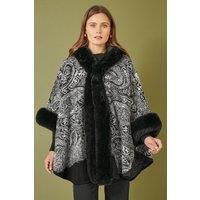 This cosy cape is perfect for the new season and the cooler weather incoming. In a paisley design that will be super easy to style with your casual everyday fits, The lovely soft knit looks perfect with denim and a roll neck jumper. With a luxury faux fur trim at the collar and cuffs. | Yumi Women's Black Faux Fur Trim Cape With Paisley Print | Size: Small/Medium - Manufacturers part number: Yumi_5056562319130