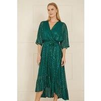 This kimono shape dress is the ultimate party piece! With flowy dip hem style, with all over shimmering sequins that catch the light beautifully. The tie at the waist and V neckline are incredibly elegant and will look amazing at any event or invite this festive season. | Yumi Women's Green Sequin Kimono Midi Wrap Dress | Size: 8 - Manufacturers part number: Yumi_5056562320150