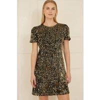Full of sparkle, this Yumi Sequin Tunic Dress is all you need for party season. With a relaxed silhouette, it has been cut in an easy-to-wear tunic shape and is fully lined. Complete with a round neckline, short sleeves and a zip fastening running up the back, its ready for a dance floor, party or special occasion | Yumi Women's Gold Sequin Tunic Dress | Size: 26 - Manufacturers part number: Yumi_5056562321522