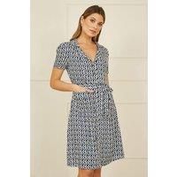 In a cool geo print this nod to retro is perfect for summer daytime dressing. With a button down design, collared neckline and tie at the waist, it's a mega flattering fit. The knee length hemline and pockets really make this dress something you will wear from work to weekend invites. - Perfect everyday dress for work to weekend- Tie belt at the waist and pockets- A nod to retro with a shirt style button down design - Manufacturers part number: Yumi_5056562329146