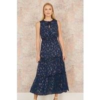 This is a perfect option for wedding season for something a little more unique. The midi hemline is enhanced with a tiered shape, with ruched waistline and notched neck that ties. The all over scattered foil print shimmers beautifully. Wear with a bolero and heels for any spring invite.-Beautiful foil print dress ready for party season-Ruched waistline for style and a comfortable fit-Looks great paired with a bolero | Yumi Women's Navy Foil Print Ruched Waist Midi Dress With Tie Notch Neckline | Size: 10 - Manufacturers part number: Yumi_5056562333044