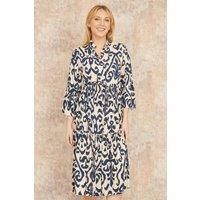 We love an easy fit for the summer and this tunic from Yumi is the perfect way to get that relaxed pool side vibe. The all over bold print looks so good in the sunshine. With a relaxed fit, notched neckline, 3/4 sleeves finished with a flared bell style. Wear over your swimwear on the beach, or style with sandals and a beach bag for evening holiday plans. Designed in house and made from lightweight viscose.- 3/4 Sleeves with bell flare designed- Easy relaxed fit- Print designed in house for Yumi- Made from lightweight fabric | Yumi Women's Navy Block Print Kaftan in Ivory | Size: 10 - Manufacturers part number: Yumi_5056562338230
