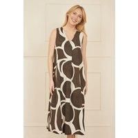 The oversize abstract circle print takes over the entirety of this relaxed fit trapeze style dress. The crossover neckline compliments the easy draped shape. The Midi length looks perfect styled with sandals or trainers,-Big and bold abstract circle print-Easy and relaxed trapeze fit dress-Made from breathable and soft cotton | Yumi Women's Brown Cotton Abstract Circle Trapeze Relaxed Midi Dress | Size: Medium - Manufacturers part number: Yumi_5056562338452