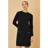 This long sleeve knitted tunic dress is perfect for everyday wear, from work to weekend with ease. The super soft knitted fabric in a relaxed fit make this piece a wardrobe essential. With buttons on the shoulder, and a snaffle detail on the pockets, it whispers sophistication. - The perfect knitted dress from relaxed everyday dressing- Super cute details on the shoulder and pockets- Super soft knit- Easy to style with tights and boots
