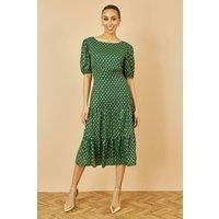 A great midi dress can have you feeling like a million dollars and this Green one from Yumi is perfect for any occasion. With 1/4 sleeves, a stunning scoop back detail and that shimmering all over gold foil print is the perfect way to dress up for weddings or parties. The tiered midi length skirt flows for ultra feminine vibes. Add gold accessories to accentuate the print. | Yumi Women's Green Gold Foil Spot Midi Dress With Scoop Back | Size: 12 - Manufacturers part number: Yumi_5056562350898