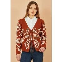 This absolute stunner for the new season is ready for everyday style. The gorgeous folk style embroidery is bang on trend. With a tie front fastening, ready to style with jeans and trainers.- Absolutely gorgeous knitwear for the new season- Folk design embroidery and tie front- Made from a lovely soft knit | Yumi Women's Brown Folk Embroidered Tie Front Cardigan Sweater | Size: Medium