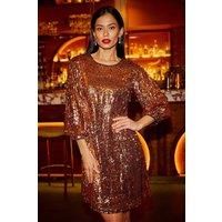 The party season is here and we love all over sequins for ultimate glam! The 3/4 balloon sleeves add a unique take on the tunic shape. With a shorter hemline and round neck. We love this shimmering and shining dress for any invite. - All over sequins- Balloon sleeves and shorter hemline- Shimmer and shine this party season | Yumi Women's Gold Sequin Tunic Dress With Balloon Sleeves | Size: 16 - Manufacturers part number: Yumi_5056562405178