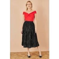 Gorgeous applique and sequin design make this midi skirt a stand out piece for the party season. The ruched waist adds comfort to it for wearing to any event. Wear with a roll neck for an elegant finish. - Midi length skirt ready for party season- Sequin details ready to sparkle and shine- Perfect for any invite | Yumi Women's Black Mesh Applique Sequin Midi Skirt | Size: 14 - Manufacturers part number: Yumi_5056562406212