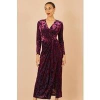 Chic and stylish for any invite this season - This midi dress from Yumi is crafted from gorgeous velour with a lead design. It oozes elegance in a wrap over shape with a V neckline and super flattering ruching at the waist, the hemline is split.- Channel your inner diva in this dress for party season- Midi length and stylish wrap shape- Gorgeous burnout velour design | Yumi Women's Burgundy Velour Stretch Midi Dress With Long Sleeves | Size: 8