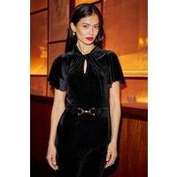 Up the style for any invite this season in this chic jumpsuit from Yumi. The design feature include a twist knot neckline, angel sleeves and a buckle belt at the waist. With wide flowing legs the shape is impeccable and super flattering.- This velvet jumpsuit is perfect for upping the style for the new season- With a gorgeous twist neckline and buckle belt detail- Gorgeous for party season | Yumi Women's Black Velvet Jumpsuit With Twist Neckline & Buckle Belt | Size: 16 - Manufacturers part number: Yumi_5056562411995