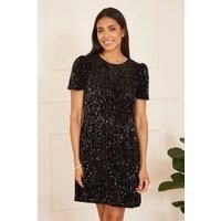 With dazzling sequins embellished on lightweight fabric, this tunic dress is a perfect party piece. The short sleeves and relaxed silhouette offer an timeless shape that can be worn every year. Wear with knee-high boots for maximum impact. | Yumi Women's Black Sequin Tunic | Size: 26 - Manufacturers part number: Yumi_5056562417201