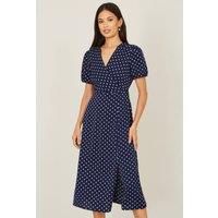 This super cute spot dress is perfect for the new season - In a wrap shape that is super flattering, in a midi length. The tea dress style is great to pair with trainers or sandals in the summer. We love this for early vacations, or brunch with friends. The puff sleeves and tie at the side are great classic details for a classic look.- Super cute and ready for spring in this classic tea dress- Adorable all over spot print paired with a flattering wrap shape- Midi length, perfect for pairing with...