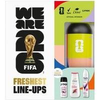 Freshest Line-Ups FIFA Gift Set for Her Body Wash, Spray & Water Bottle Get your squad together and give them the perfect gift for a football fan. The Freshest Line-Ups Gift Set has everything she needs to stay fresh and ready for the full 90 minutes. Whether she's on the field or cheering in the stands, this care set brings freshness, hydration and confidence. Features 3-in-1 gift set with deodorant, wash, spray and water bottle 48H odour and 72H sweat protection Floral, fruity scents with mint and citrus notes Gentle body wash with hibiscus and pomegranate FIFA 2026 inspired limited edition set LYNX ATTRACT FOR HER BODYSPRAY 150ML: Alcohol Denat., Butane, Isobutane, Propane, Parfum, Zinc Neodecanoate, Isopropyl Myristate, Alpha-Isomethyl Ionone, Citronellol, Citrus Limon Peel Oil, Farnesol, Geraniol, Limonene, Linalool, Pinene, Trimethylbenzenepropanol. Package includes : FIFA Hydrate Gift Set for Her(Select Your Size) | Sure Freshest Line-Ups FIFA 'Gift Set' for Her Body Wash & Spra... - Manufacturers part number: Sure_5056564731428