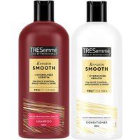 Tresemme Keratin Smooth 1x Shampoo & 1x Conditioner Bundle 680ml Each Shampoo: There's something about sleek, frizz-free hair that lets you take on the day with confidence. You can now get that style without having to go to a salon with Tresemme Keratin Smooth Shampoo. Features: Transform frizzy hair into luxuriously smooth and sleek tresses with Tresemme Keratin Smooth Shampoo This professional-quality shampoo features PRO Style Technology, which works from the inside out to leave hair strong and manageable with continued use Formulated with hydrolysed keratin, our moisturising shampoo provides smoothness, shine and up to 72 hours of frizz control Conditioner: There's something about sleek, frizz-free hair that lets you take on the day with confidence. You can now get that style without having to go to a salon with Tresemme Keratin Smooth Conditioner. Features: Transform frizzy hair into luxuriously smooth and sleek tresses with Tresemme Keratin Smooth Conditioner This professional-qu... - Manufacturers part number: Tresemme_5056564733361