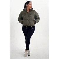 Build up your essentials this season and go back to the basics with our Hooded Drawstring Cropped Puffer Jacket. With a luxe matte material in an on trend padded puffer style, this jacket will keep you cosy all winter. | Femme Luxe Women's Hooded Drawstring Cropped Puffer Jacket in Khaki | Size: 8