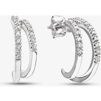 These elegant half-hoop earrings are crafted in 9ct white gold and feature a two-row design set with sparkling diamonds with a total carat weight of 0.10ct. These earrings are completed with a post & butterfly back fastening. Diamond Colour: H Diamond Clarity: I2 Weight: 2.5g Width: 0.51cm Height: 1.44cm Item Code: PE03084W