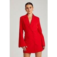 Model is 5'6 and wears a size 8. - Slim fit - Long flared sleeves - Pockets - Button front - Mini length | Urban Bliss Women's Blush Flare Sleeve Fitted Blazer Dress in Red | Size: 4