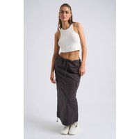 Model is 5'6 and wears a size S. Slim fit. High Waisted. Midi length. Drawstring waist. Made from a soft and lightweight charcoal fabric, this midi skirt features a unique parachute silhouette that adds movement and dimension to your outfit. The gathered waistline creates a flattering drape, while the midi length offers a modern and elegant aesthetic. Designed for everyday wear, this skirt is as practical as it is stylish. The waistband ensures a comfortable fit, while the lightweight fabric allows for easy movement throughout your day. | Urban Bliss Women's Charcoal Parachute Midi Skirt | Size: 10 - Manufacturers part number: Urban Bliss_5056573240461