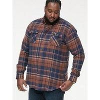 D555 Sherlock Check Overshirt Size & Fit True to size - order your usual size Available in sizes 2XL - 6XL (2XL:50""-52"", 3XL:53""-55"", 4XL:56""-58"", 5XL:59""-61"", 6XL:62""-64"") Details Sherlock Check Overshirt - by D555 Navy Checked print Shirt collar Button through Long sleeves with button cuffs Patch flap pockets with button fastening Material & Care Material Content: 100% Cotton - Manufacturers part number: 111605-sherlock-LS-SHIRT-navy-tan