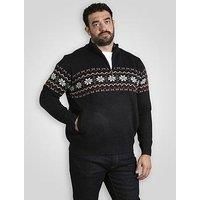 D555 1/4 Zip Knitted Jumper Fairisle With Bonded Check Lining Size & Fit True to size - order your usual size Regular fit Available in sizes 2XL - 6XL (2XL:50"-52", 3XL:53"-55", 4XL:56"-58", 5XL:59"-61", 6XL:62"-64") Details 1/4 Zip Knitted Jumper Fairisle With Bonded Check Lining by D555 Navy Knitted fabric Bonded check lining Fairisle pattern High neckline Quarter zip fastening Long sleeves Side pockets Ribbed trims Material & Care Material Content: 100% Polyester Washing Instructions: Machi...