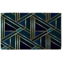 Add style to your space with this trend designer artwork kitchen towel perfect for all kitchen types. Durable and machine washable for everyday use. | Benjamin Tate Design Gold & Teal Geometric Pattern Designer Kitchen Towel
