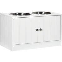 With these raised pet bowls from PawHut, large and older dogs can drink and eat comfortably. Bending down for food causes strain, which can lead to health problems in the future this won't be an issue with this dog feeding station. It includes two stainless steel bowls for food and water, which are removable for cleaning. There's a hidden cabinet to keep pet supplies, so it's quick and easy to refill their bowls. Finished with a sleek design, it'll complement your living space perfectly.Features:Two... - Manufacturers part number: D08040V00WT