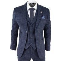 Sharp, sleek and sophisticated, look the part with this premium 3 piece Blue tweed suit, that features a slim fit cut, with a closer fit across the chest and narrower tailored trousers. the two-button jacket hangs beautifully and has a half canvas construction that moulds to your body shape the more you wear it. Contrasting flap pockets, buttoned cuffs and a double back vent lend the suit a classic touch of refinement. A matching tweed waistcoat completes the 3-piece with a single breasted down style wi...