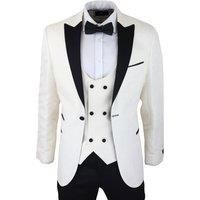 Sharp, sleek and sophisticated, look the part with this premium Satin Blazer and waistcoat , Finished In Stunning Ivory with Contrasting Black Satin Peak Lapels & Matching Satin Buttons. Perfect Tuxedo Dinner Jacket To Truly Stand Out From The Croud, Ideal For All Formal Occasions Such As Wedding, Proms, Parties & Black Tie Events. Tailored Fit (inbetween slim & regular fit), Many More Styles & Colours Available in Store! - Note : The trouser waist is 6 inches smaller than the corresponding jacket size....