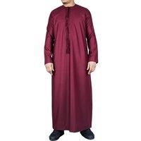 Arabic Thobes Men's Thobe Emirati Islamic Jubba Robe Eid Tassel Regular Fit in Wine | Size: Large