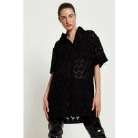 Legit style, Diamond Pattern, Button front, Regular fit, Green Embroidery, Short sleeve, oversized shirt
