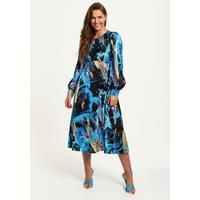 Abstract print, Midi length, Long sleeves, Matching tie waist, Zip closure back, Regular fit
