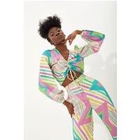 Star print, Adjustable gathered front, Tie detail, V neck, Long sleeves