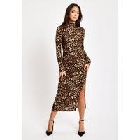 Brushed knit, Animal print, Long sleeves, High neck, Front slit - Manufacturers part number: Liquorish_5056616146989