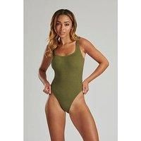 South Beach Crinkle Scoop Swimsuit Size & Fit True to size - order your usual size High cut Available in sizes 8 - 16 Details Crinkle Scoop Swimsuit by South Beach Green Scoop neck Fixed straps Pull on fastening Crinkle texture Products must be returned unworn, unwashed, in their original condition with all tags and original order packing slip We reserve the right to refuse returns that show signs of wear or do not meet the above criteria Material & Care Material Content: 97% Polyester, 3% elastane Wash...