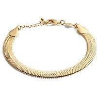 Katie Loxton CIANA LARGE SNAKE CHAIN BRACELET , Gold , Bracelet , 18cm + 3cm extender Elevate any ensemble effortlessly with the Ciana Waterproof Gold Large Snake Chain Bracelet from Katie Loxton. Crafted with a durable 18K Gold PVD Coating, this statement piece is waterproof, sweat-proof, and life-proof, ensuring it remains a staple in your jewellery collection. Whether worn alone or stacked with other bracelets, this versatile accessory complements various outfits and styles. As a special touch, each ...