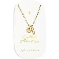 Collect Adventures Waterproof Gold Charm Necklace For every adventure-seeker, there's Katie Loxton's 'Collect Adventures' Waterproof Gold Charm Necklace. Presented on a premium card that is printed with the golden sentiment, this beautiful necklace is designed in durable 18K Gold PVD Coating - meaning it is waterproof, sweat proof and life proof - and pairs an emblished circle charm with a bar charm. This style comes complete with a Reusable Suedette Jewellery Pouch Depth: 1 CM Height: 13 CM Width: ... - Manufacturers part number: VY9NV