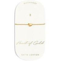 Katie Loxton HEART OF GOLD WATERPROOF GOLD CHARM BRACELET Certified waterproof, the Heart Of Gold Charm Bracelet from Katie Loxton is designed in durable 18K Gold PVD Coating, meaning it is waterproof, sweat-proof and life-proof - and features a beautiful heart-shaped charm. Pair this style effortlessly with the matching Heart Of Gold Earrings and Necklace for a coordinated look. Height: 18 CM Fashion Jewellery Type: Bracelets Metal Type: Base Metal