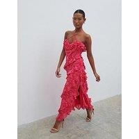 Pretty Lavish Aryana Jacquard Ruffle Midaxi Dress Size & Fit True to size - order your usual size Slim fit Midaxi length Available in sizes 6 - 16 Details Aryana Jacquard Ruffle Midaxi Dress by Pretty Lavish Pink Sleeveless Adjustable straps can be crossed over on front or the back Side split hem Sweetheart neckline Zip up fastening Ruffled detailing Jacquard fabric Material & Care Material Content: Main 100% Polyester , Lining 100% Polyester Chiffon fabrication Fully lined Sweetheart neckline with ruff... - Manufacturers part number: W9RNX