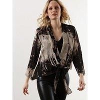 Religion Long Sleeve Tie Front Double Layer Top - Black/neutral Material Content: IN