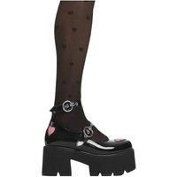 Lamoda Rosey Love BlackPAT Pink Chunky Mary Jane Shoes Platform Heels Make a bold and playful fashion statement with the Lamoda Rosey Love Chunky Mary Jane Shoes. Designed in glossy BlackPAT with adorable pink heart details, these shoes perfectly balance gothic edge with kawaii charm. Featuring a chunky platform sole and thick block heel, they add dramatic height while maintaining comfort and stability. The bold silhouette is perfect for alt, punk, or Lolita-inspired styles, making them a standout addit... - Manufacturers part number: LMS 449 - Black Patent/Pink