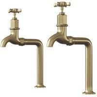 Pair of sleek, angular kitchen sink bib taps and stands ideal for vintage-style kitchens. Each tap is labelled and features independent hot/cold supply control and flow. 1/4 Turn 1 Year Guarantee Suitable for High Pressure Systems Labelled Independent Hot / Cold Taps - Manufacturers part number: 467JL