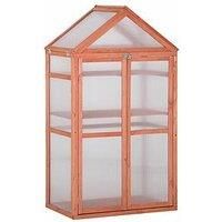 The OutSunny Wooden Cold Frame Greenhouse is ideal for seedlings, cuttings and more. This Outsunny cold frame greenhouse allows you to grow plants and more almost anywhere. The sturdy wood frame is fitted with transparent polycarbonate panels to let the sun to shine through. Inside there are 2 adjustable shelves to create 3 differently-sized areas for organised growth storage. It's finished with 2 doors with latches for easy access. Features: Suitable for most outdoor and indoor spaces with space for u...