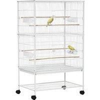 PawHut Large Bird Cage Aviary for Finch Canaries, Budgies with Rolling Stand, Slide-out Tray, Storage Shelf, Wood Perch, Food Containers, White A place for birds to thrive, thanks to this spacious cage from PawHut. It comes with four wooden perches, providing plenty of options for pets to stand, whilst the four plastic containers are for easy feeding. There are two large front doors and four side doors, so you can access the cage, ensuring they have enough food and water. The bottom pull-out tray makes ...