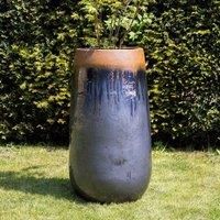 This classic terracotta planter is a striking addition to any garden or patio. The colour is perfect for complementing plants, flowers and topiary. A timeless and traditional looking material for pots and planters, terracotta has been a popular garden staple for hundreds (if not thousands) of years. This sturdy material is great for resisting bad weather and is also slightly porous, resulting in healthier roots and plants. | Primrose Terracotta Tall Round Honey Pot Style Planter In Grey & Blue 75cm in D...