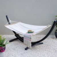 Relax in style in your garden this summer with this sophisticated wooden hammock stand. This eye-catching handcrafted stand is made from high quality pine wood finished with a unique charcoal colour featuring trend and elegance in your garden space. With two sturdy feet so you can feel free to relax in safety. Pair this with the hammock colour of your choice for your desired relaxation space. All hammock stands include accessory fittings to attach most hammocks. The Tortola Hammock offers the perfect es...