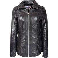 Womens black real leather jacket. Designed with a slim fit silhouette, it features quilted shoulder detailing, a front zip fastening, and panel stitching that enhances its flattering shape. The soft inner lining ensures comfort | House of Leather Women's Women's Real Leather Quilted Jacket Echo Black 10 | Size: 20